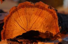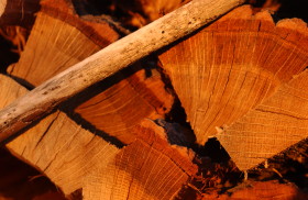 Woodpile in late afternoon light; Chesapeake Bay at Churn Creek, Worton, Maryland, USA. January 2007.
