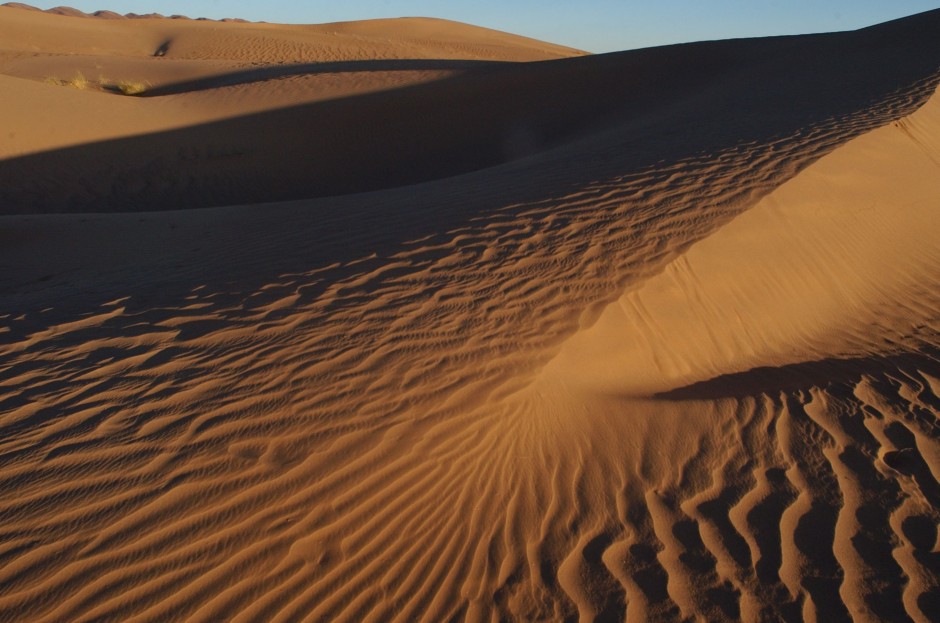 Shadows on the sand; Sahara Desert, Morocco, North Africa. December 2007.