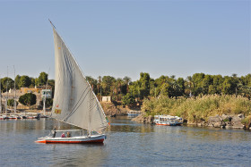 Motor-sailboat; on and along the Nile; Aswan and environs, Egypt. December 2008.