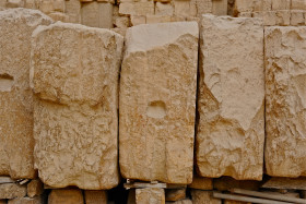 Carved in stone; pyramid area detail at Giza; near Cairo, Egypt. December 2008.