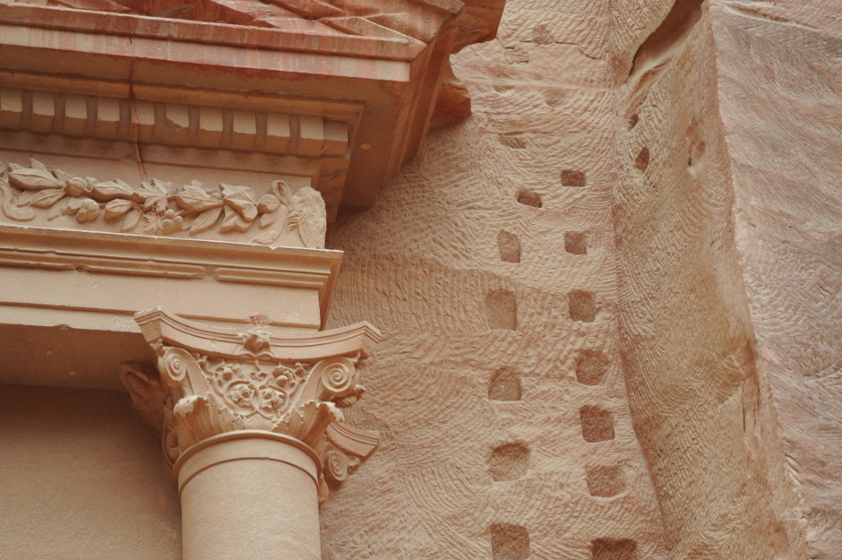Top left architectural detail; the treasury; Petra, Jordan. December 2008.