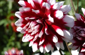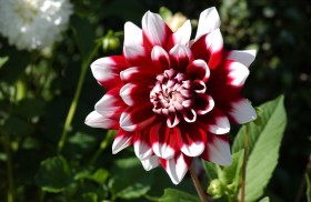 Red, white; dahlia; Oak Bluffs, Martha’s Vineyard Island, Massachusetts. September 2009.