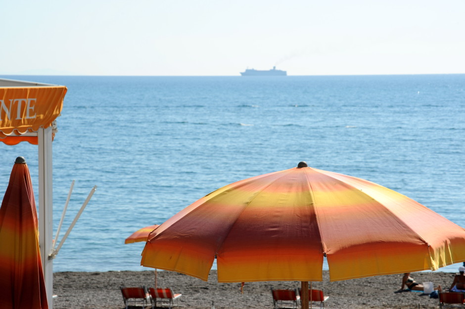 Little boat, big boat; Mediterranean Sea; Amalfi, Italy. October 2009.