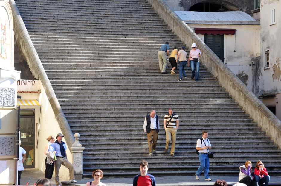 In step, down the steps; Cathedral of St. Andrew; Amalfi, Italy. October 2009.