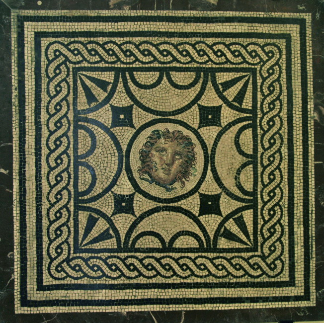Man in the middle; framed mosaic; National Archaeological Museum; Naples, Italy. October 2009.