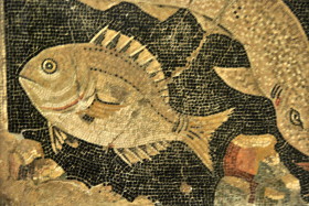 Four fish; mosaic; National Archaeological Museum; Naples, Italy. October 2009.