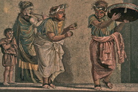 Detail; man in the middle; mosaic; National Archaeological Museum; Naples, Italy. October 2009.