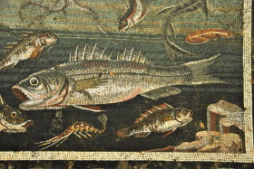 Framed fish mosaic; National Archaeological Museum; Naples, Italy. October 2009.