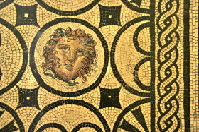 Mosaic; unhappy person two; National Archaeological Museum; Naples, Italy. October 2009.