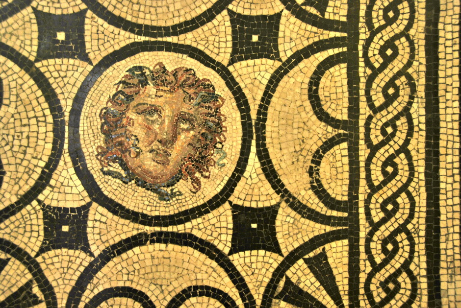 Mosaic; enhanced exposure; unhappy person two; National Archaeological Museum; Naples, Italy. October 2009.
