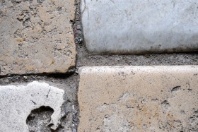 Paver intersection; main entry level; the Colosseum, Rome, Italy. October 2009.
