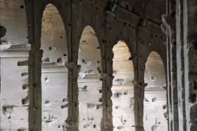 Deteriorating architectural detail; main entry level; the Colosseum, Rome, Italy. October 2009.