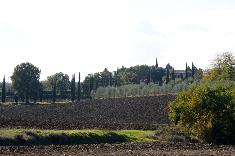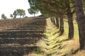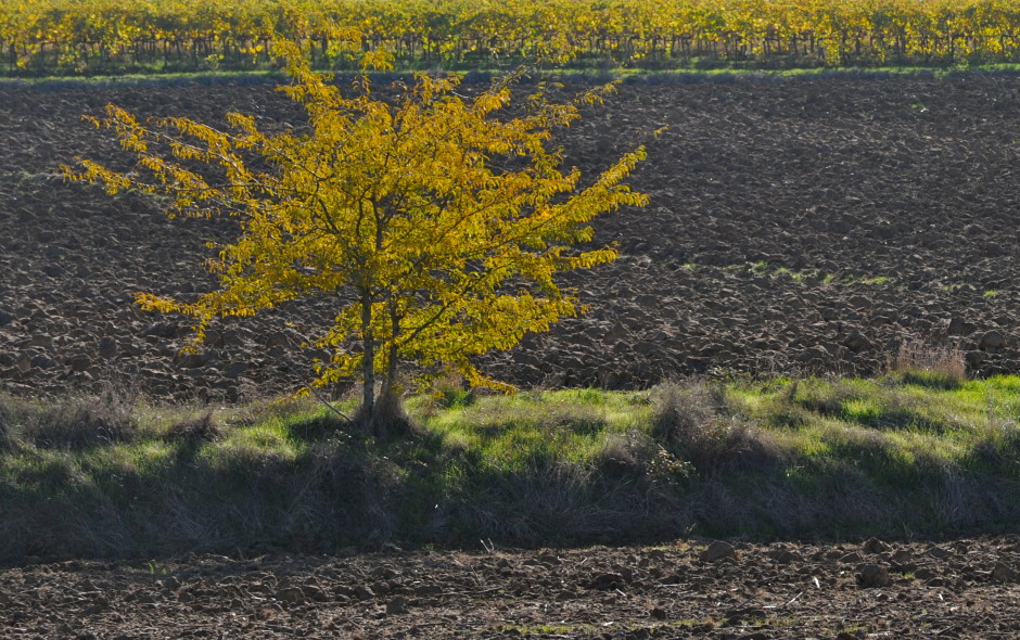 As shadows fall on freshly turned earth; near Cortona, Italy. November 2009.