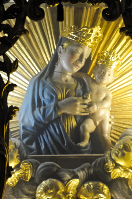 Madonna; ornate frame; Il Duomo de Cortona, Cattedrale Santa Maria della Assunzione; Cortona, Italy. November 2009.