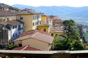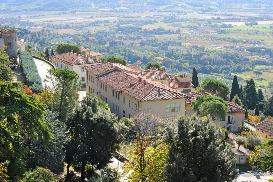 Across some hillside rooftops; Cortona, Italy. November 2009.