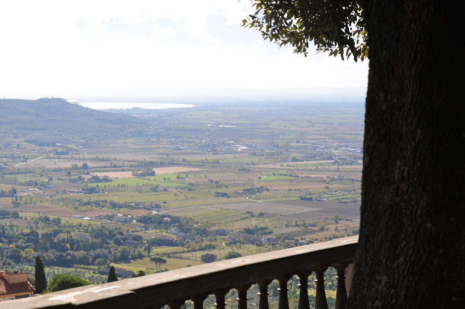 In dappled light; overlook; Cortona, Italy. November 2009.