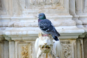 Pigeon perch; fountain; Piazza del Campo; Siena, Italy. November 2009.