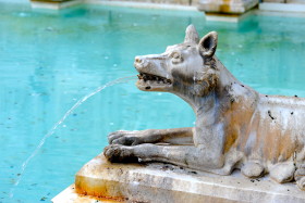 Dog; fountain; Piazza del Campo; Siena, Italy. November 2009.