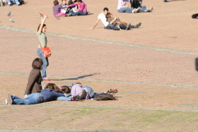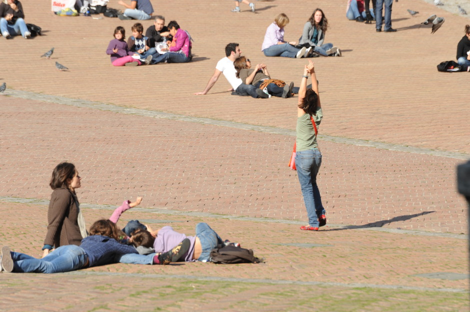 Knees up; Piazza del Campo; Siena, Italy. November 2009.