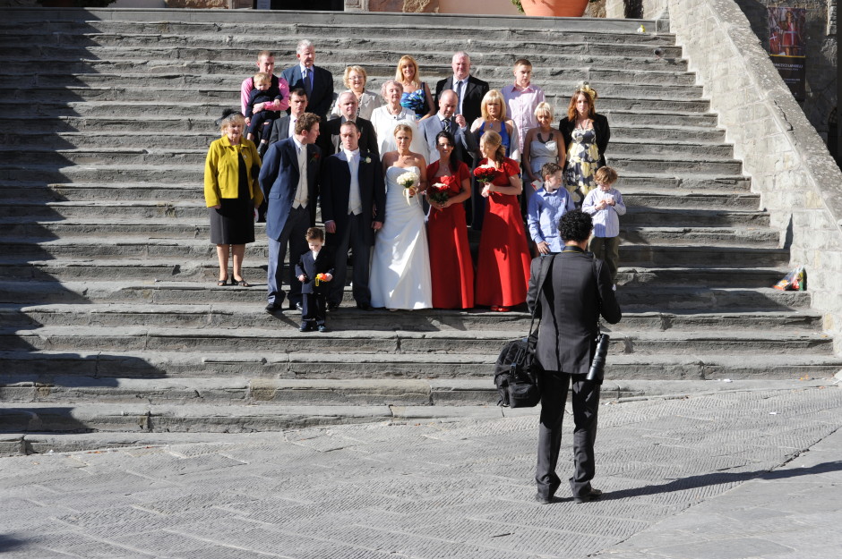 Everyone is ready except the groom. Town hall steps, Cortona, Italy. November 2009.