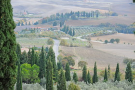 On the approach; Pienza, Tuscany, Italy. November 2009.
