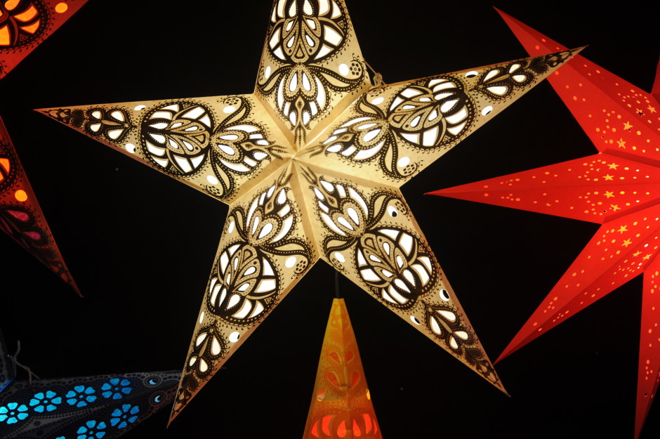 A holiday star, Christmas Market, Esslingen, Germany. December 2009.