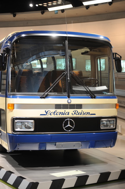 Team or tour bus; Mercedes-Benz Museum, Stuttgart, Germany. December 2009.