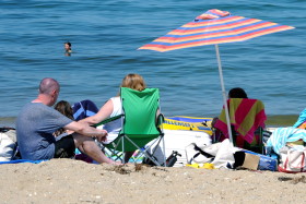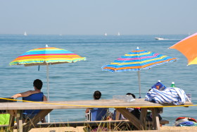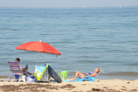 Vacation on the margin; State Beach, Edgartown, Martha’s Vineyard, Massachusetts, USA. August 2010