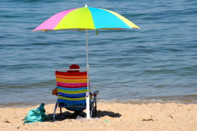 Beach-ball colors; State Beach, Edgartown, Martha’s Vineyard, Massachusetts, USA. August 2010