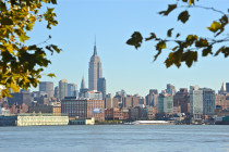 Framed; Empire State Building, midtown Manhattan; as seen from Hoboken, New Jersey, USA. October 2010.