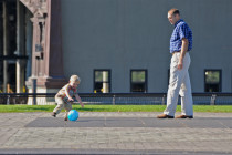 Family time; Sunday morning along the Hudson River; Hoboken, New Jersey, USA. October 2010.