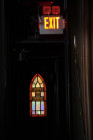 Prayer chapel; exit sign; Arch Street Methodist Church, Philadelphia, Pennsylvania, USA. November 2010.
