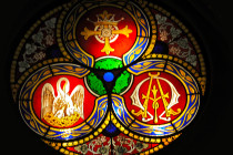 Detail; stained glass window; Arch Street Methodist Church, Philadelphia, Pennsylvania, USA. November 2010.
