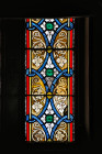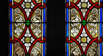 A single pattern cycle; stained glass window detail; Arch Street Methodist Church, Philadelphia, Pennsylvania, USA. November 2010.