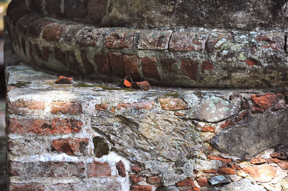Material blend; rock, brick, coral; Cinnamon Bay Plantation ruins; St. John, U.S. Virgin Islands. January 2011.