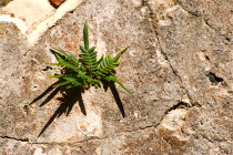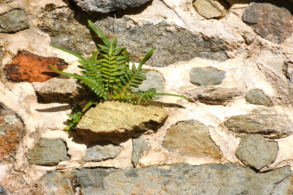 An unlikely place to flourish; Cinnamon Bay Plantation ruins; St. John, U.S. Virgin Islands. January 2011.