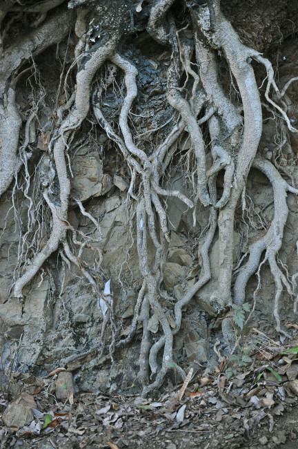 Exposed roots; Maho Bay Camp, St. John, U.S. Virgin Islands. January 2011.