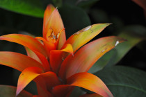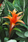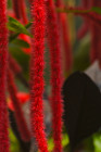 Tangle of dark leaves, red floral brushes; The Waterlily House; Royal Botanic Garden, Kew; London, England. July 2011.