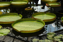 Shady time; Victoria amazonicas, pads and blooms; The Waterlily House, Royal Botanic Gardens, Kew; London, England. July 2011.