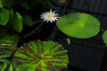 Bloom, bud; The Waterlily House, Royal Botanic Gardens, Kew; London, England. July 2011.