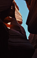 Skyward from deep within; Lower Antelope Canyon; Navajo Tribal Park near Page, Arizona, USA. March 2012.