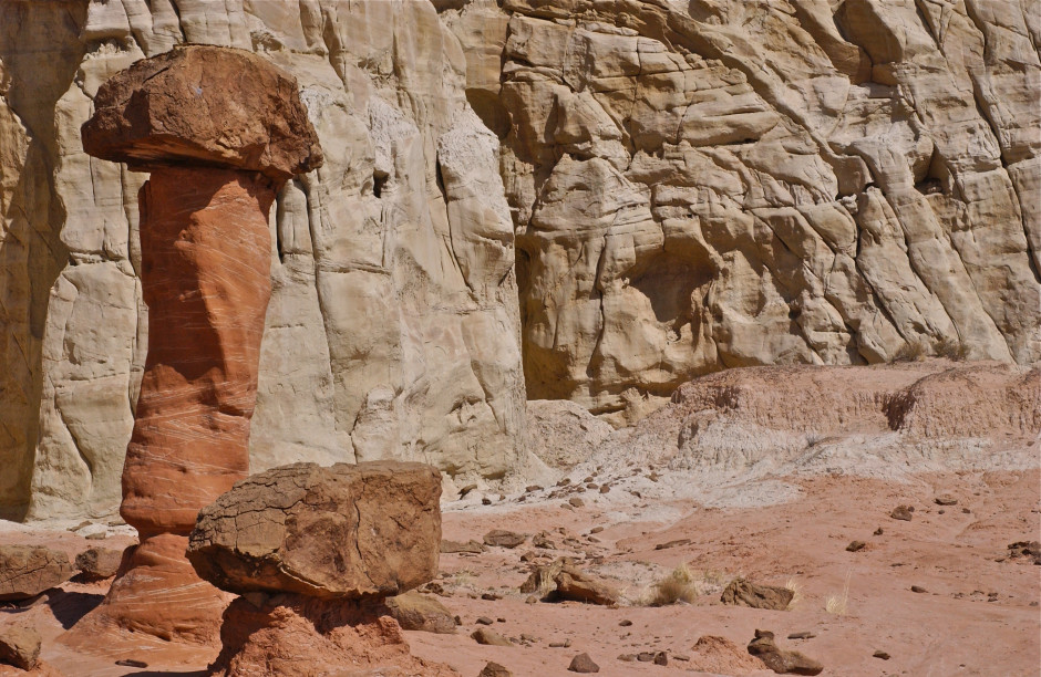 Where red meets white; Paria Rimrocks Toadstools; Grand Staircase-Escalante National Monument, Utah, USA. March 2012.