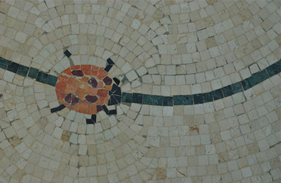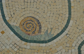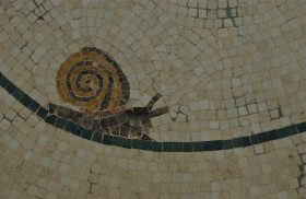 Snail; tile floor detail; Hotel Bellagio, Las Vegas, Nevada, USA. March 2012.