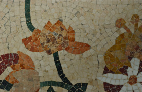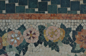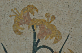 Flowers three; tile floor detail; Hotel Bellagio, Las Vegas, Nevada, USA. March 2012.