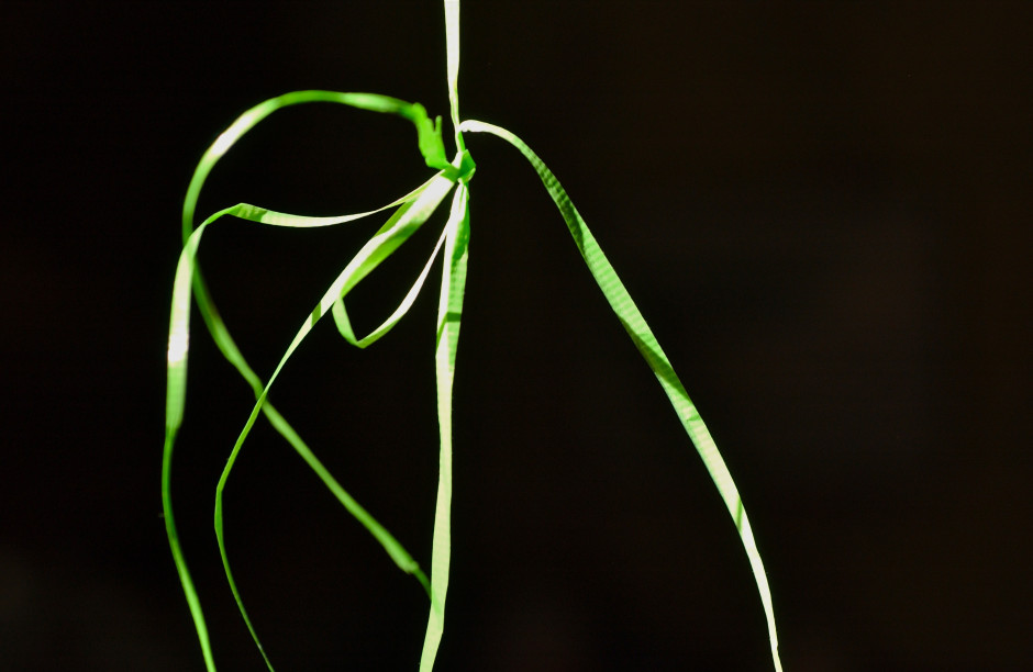 Arabesque; floating, knotted, balloon string; Wyncote, Pennsylvania, USA. April 2012.