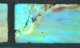 Window detail; prismatic; Temple Performing Arts Center, Philadelphia, Pennsylvania, USA. April 2012.