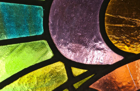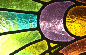 Window detail; prismatic; Temple Performing Arts Center, formerly Baptist Temple, Philadelphia, Pennsylvania, USA. April 2012.