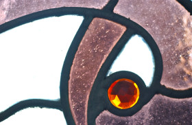 Window detail; mosaic; Temple Performing Arts Center, formerly the Baptist Temple, Philadelphia, Pennsylvania, USA. April 2012.