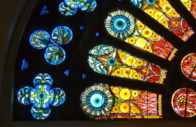 Leaded variations in glass; Temple Performing Arts Center, formerly Baptist Temple, Philadelphia, Pennsylvania, USA. April 2012.