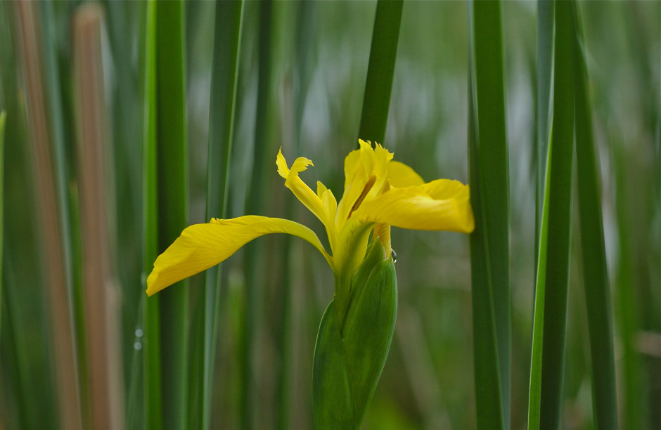 Iris; gold amid green; Churn Creek at Worton, Kent County, Maryland, USA. May 2012.
